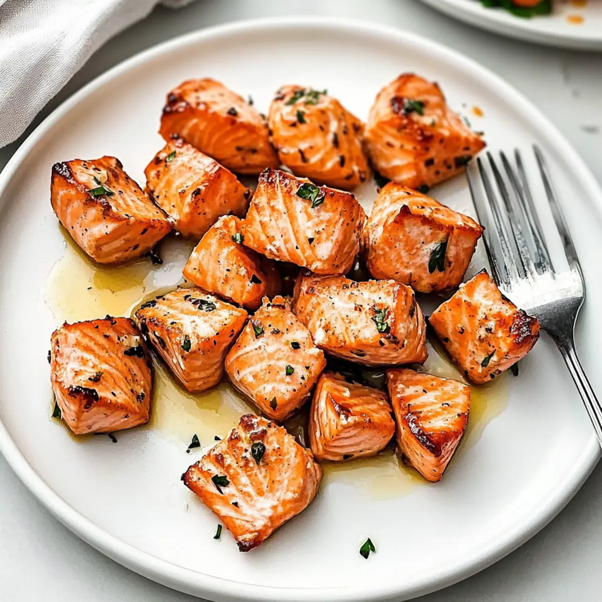 If you find your salmon bites are slightly overcooked, don’t worry! You can try pairing them with a refreshing sauce, like a yogurt dill dressing, to help moisten them. Alternatively, serving over a bed of greens or in a salad with a vinaigrette can also enhance the meal and add necessary moisture.