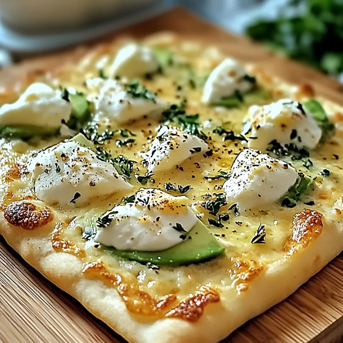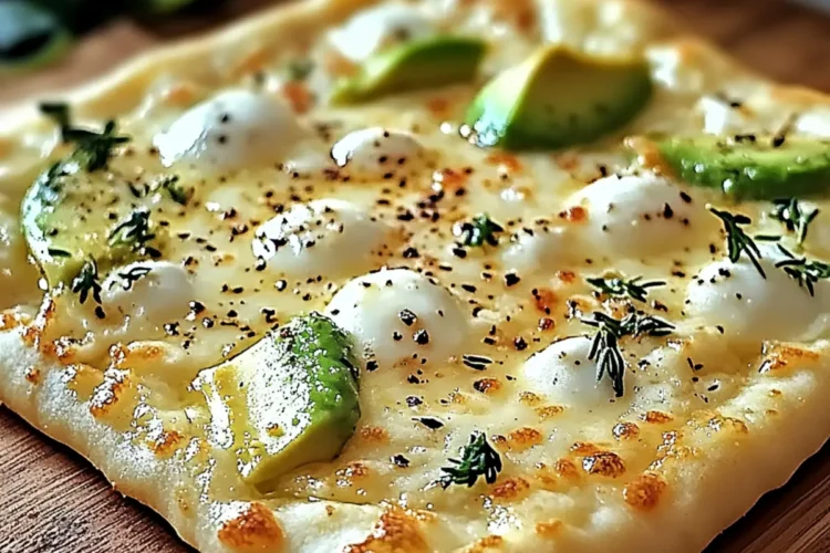 Creamy Avocado Salad: The rich creaminess of ripe avocados paired with a touch of lime adds a fresh, tangy contrast to the flatbread.