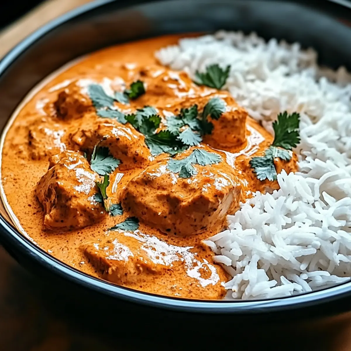 7. Ladle the Crockpot Butter Chicken over cooked rice or serve alongside warm naan.