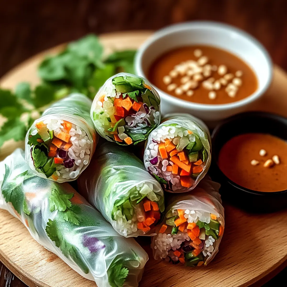 Carefully plate your assembled Delish Thai Spring Rolls alongside a small bowl of the peanut dipping sauce. These delightful rolls are best served fresh, so gather your loved ones and enjoy them right away. The combination of crunchy, fresh ingredients with the creamy sauce will be a hit at any gathering or cozy meal!