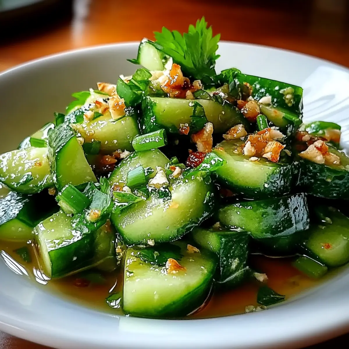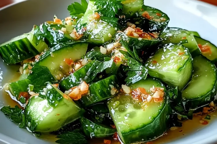 Refreshing, this salad offers a bright, cool taste that’s perfect for hot days. No-Cook Convenience: There’s no need to turn on the stove—just chop and mix! Healthy Choice: Packed with fresh ingredients, it’s low-calorie and hydrating. Customizable: Adjust the spice with red chili flakes and add extra veggies to fit your mood. Crowd-Pleasing Flavor: Its garlicky punch is sure to impress at any gathering. Pair it with grilled meats like Honey Garlic Shrimp for a complete meal!