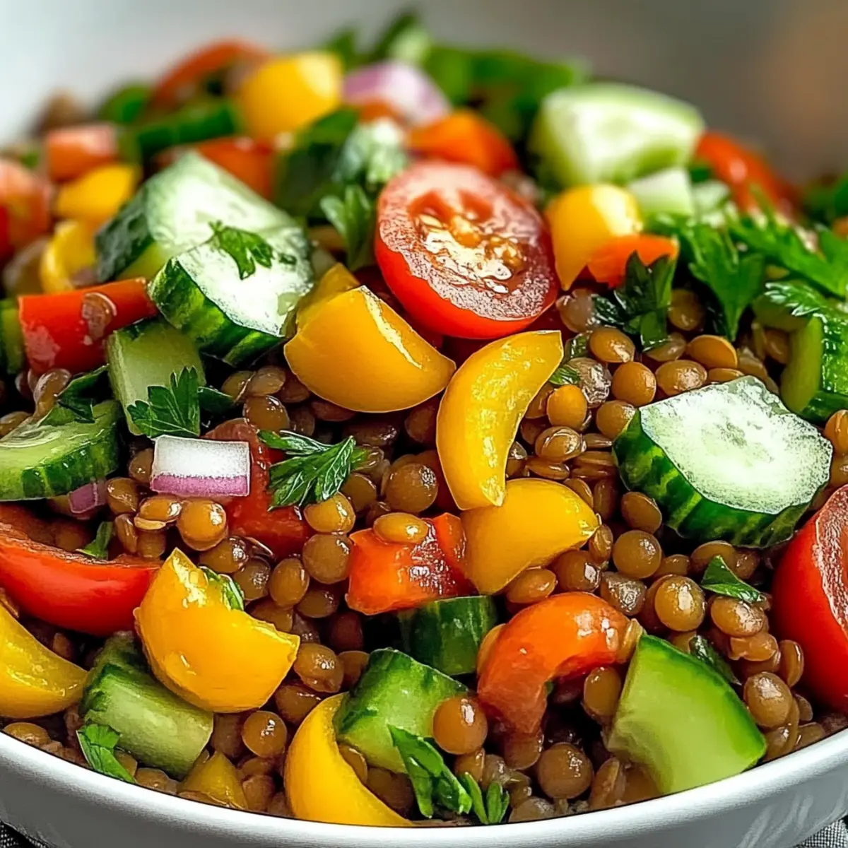 Vibrant Colors: The combination of lentils, colorful veggies, and a zesty dressing creates an eye-catching dish that tastes as good as it looks.