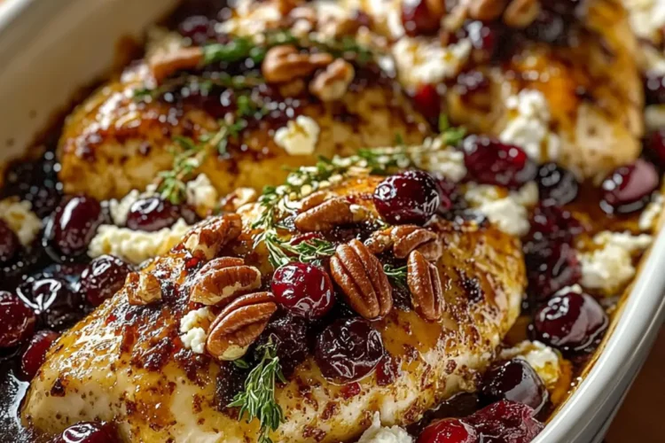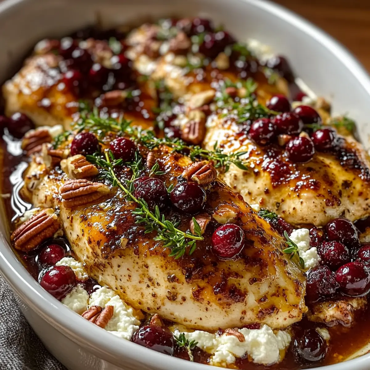 - Bake uncovered for 25–30 minutes until chicken reaches 165°F and cranberries are caramelized.
