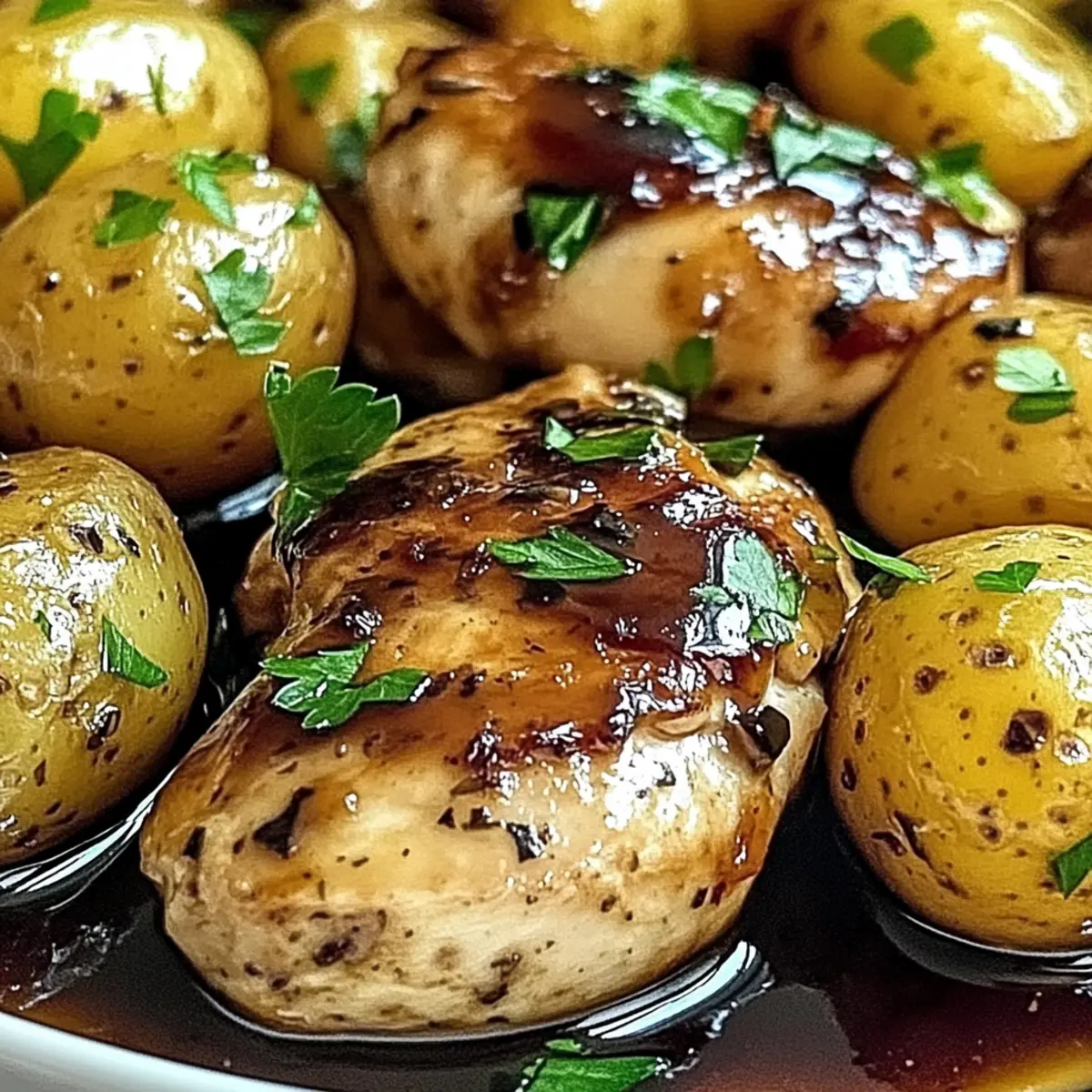 Simplicity and flavor come together beautifully in this dish, making it a true weeknight winner. One-Pan Wonder: Everything cooks together for maximum flavor and minimal cleanup. Zesty Marinade: The combination of tangy lemon and rich balsamic elevates your chicken and potatoes. Dietary-Friendly: Gluten-free options ensure that everyone can enjoy this meal. With variations like added veggies or a protein swap, you can customize it to suit your family’s preferences just like with our delicious Lemon Meringue Pie or Jalapeno Popper Chicken. Get ready for a comforting, hearty dinner that will have clean plates and happy faces all around!