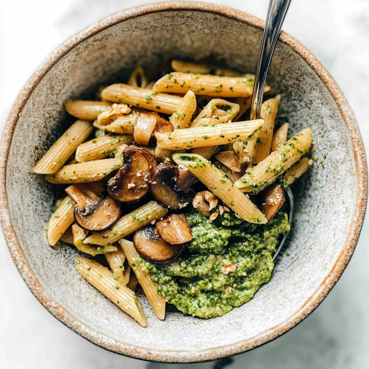 Craft this irresistible Mushroom Penne with Walnut Pesto and embrace the warm, comforting delight it brings!
