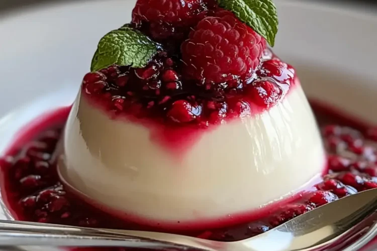 - When ready to serve, top each panna cotta with the vibrant raspberry sauce. Garnish with fresh berries or mint leaves.