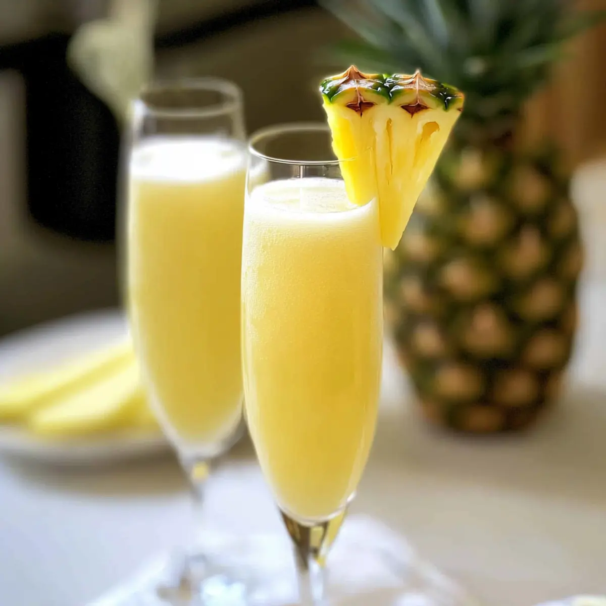 These Pineapple Mimosas are perfect for busy home cooks looking to streamline their brunch preparations! To make ahead, you can prepare the pineapple and orange juices by mixing them together up to 24 hours in advance, then refrigerate in an airtight container to maintain freshness. For an added touch, slice your fresh pineapple wedges or orange slices and store them in the fridge until ready to serve. Just before your gathering, pour the juice mixture into chilled glasses, top with champagne or sparkling wine, and garnish with your prepped fruits. This way, you can easily enjoy a delightful and refreshing Pineapple Mimosa with minimal last-minute effort, allowing you to relax and enjoy your time with family and friends!