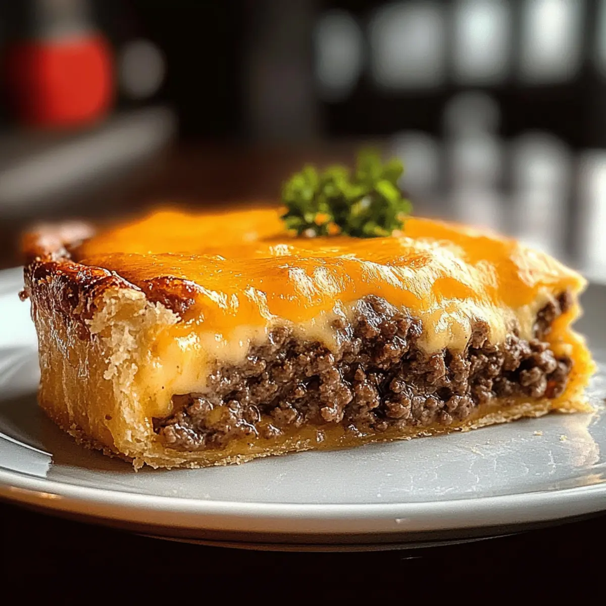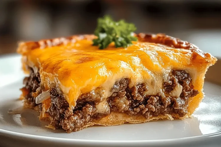 The comforting allure of a freshly baked cheeseburger pie creates an inviting atmosphere perfect for a family gathering or cozy dinner.