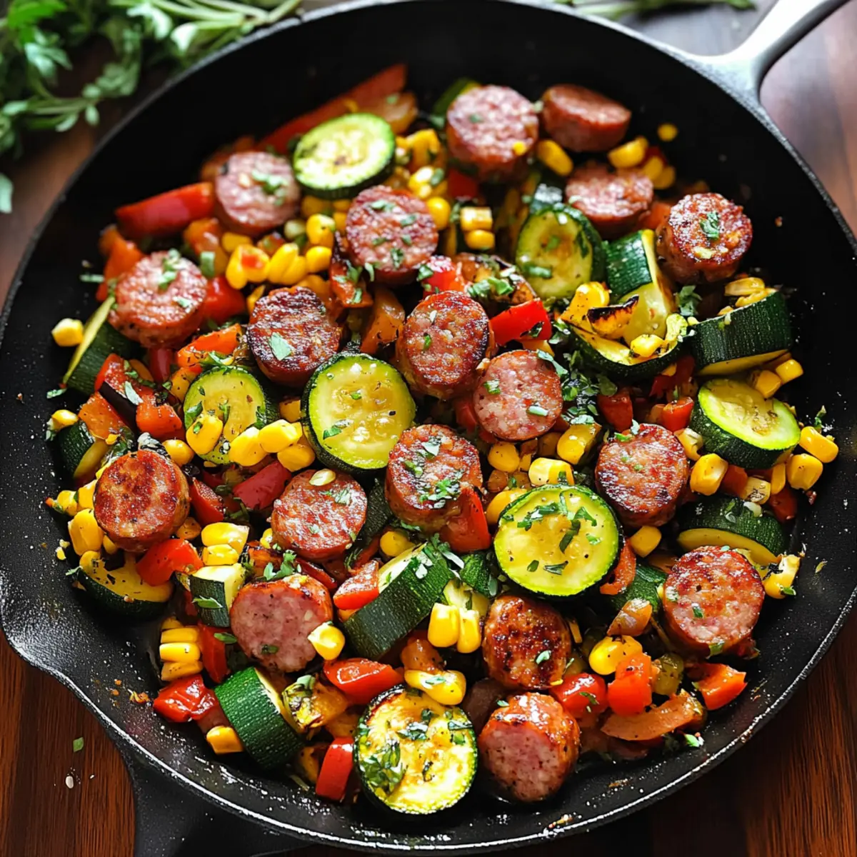 These Sausage and Veggies Skillet components are perfect for meal prep enthusiasts! You can slice the sausage and chop the veggies (bell pepper and zucchini) up to 24 hours in advance. Simply store them in airtight containers in the refrigerator to maintain freshness. If using fresh corn, you can also remove the kernels ahead of time, but keep them separate to prevent moisture loss. When you’re ready to cook, just heat the olive oil, add the sausage until browned, and then toss in the prepped veggies and corn. In just a few minutes, you’ll have a satisfying, colorful meal that’s just as delicious as if you made it all from scratch on the spot!