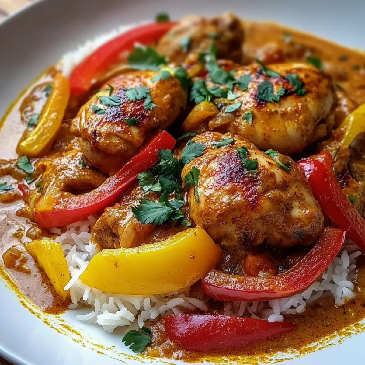 Spoon the delicious coconut chicken sauce generously over cooked rice, allowing it to soak up the flavors. Use jasmine or basmati rice for the best experience, making sure each plate feels like a tropical getaway. Enjoy your vibrant and comforting meal!