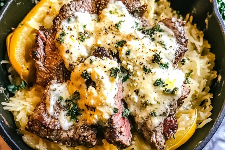 Enhance your dinner experience with this exquisite Steak Gorgonzola Alfredo Spaghetti Squash recipe that celebrates delicious flavors while keeping it healthy!