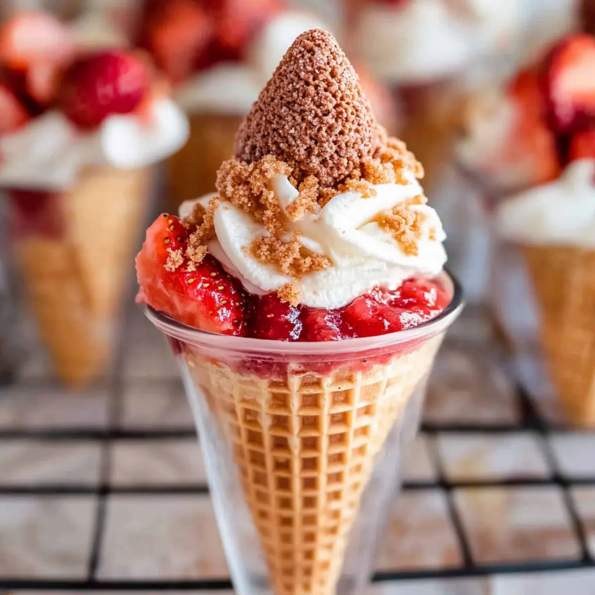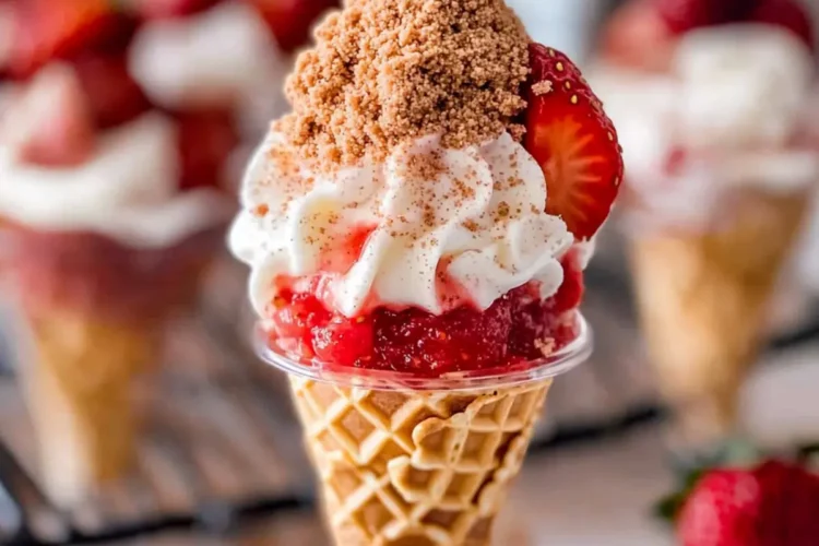 Deconstructed Style: If you’re in the mood for a twist, serve the components in cups instead of cones for a fun deconstructed version. Layer the cheesecake filling, strawberry compote, and crunch topping—it’s deliciously playful!