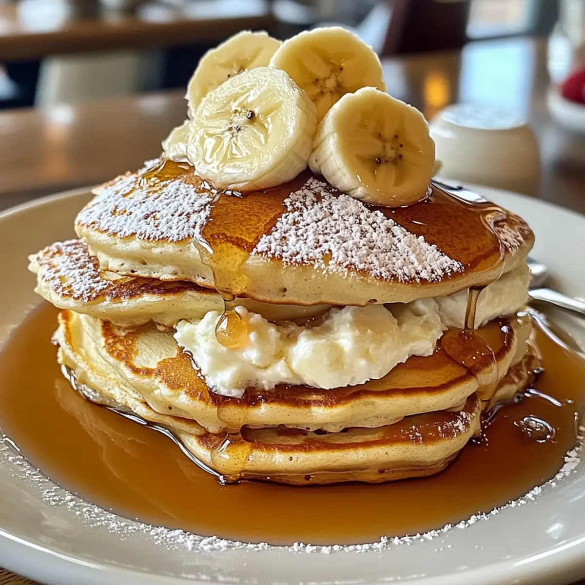- Whipped Cream: Serve with a fluffy cloud of whipped cream to add decadence. This creamy topping contrasts perfectly with the pancakes’ light texture.