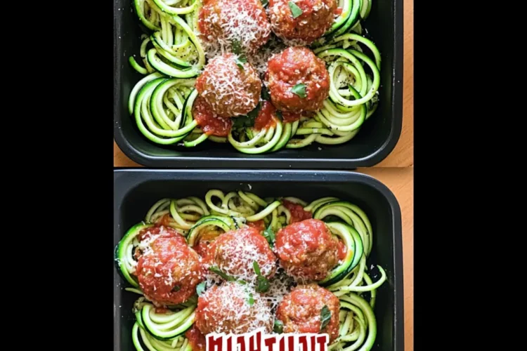 - Assemble the dish by dividing the zucchini noodles into bowls, topping with meatballs, marinara sauce, and sprinkling Parmesan cheese.